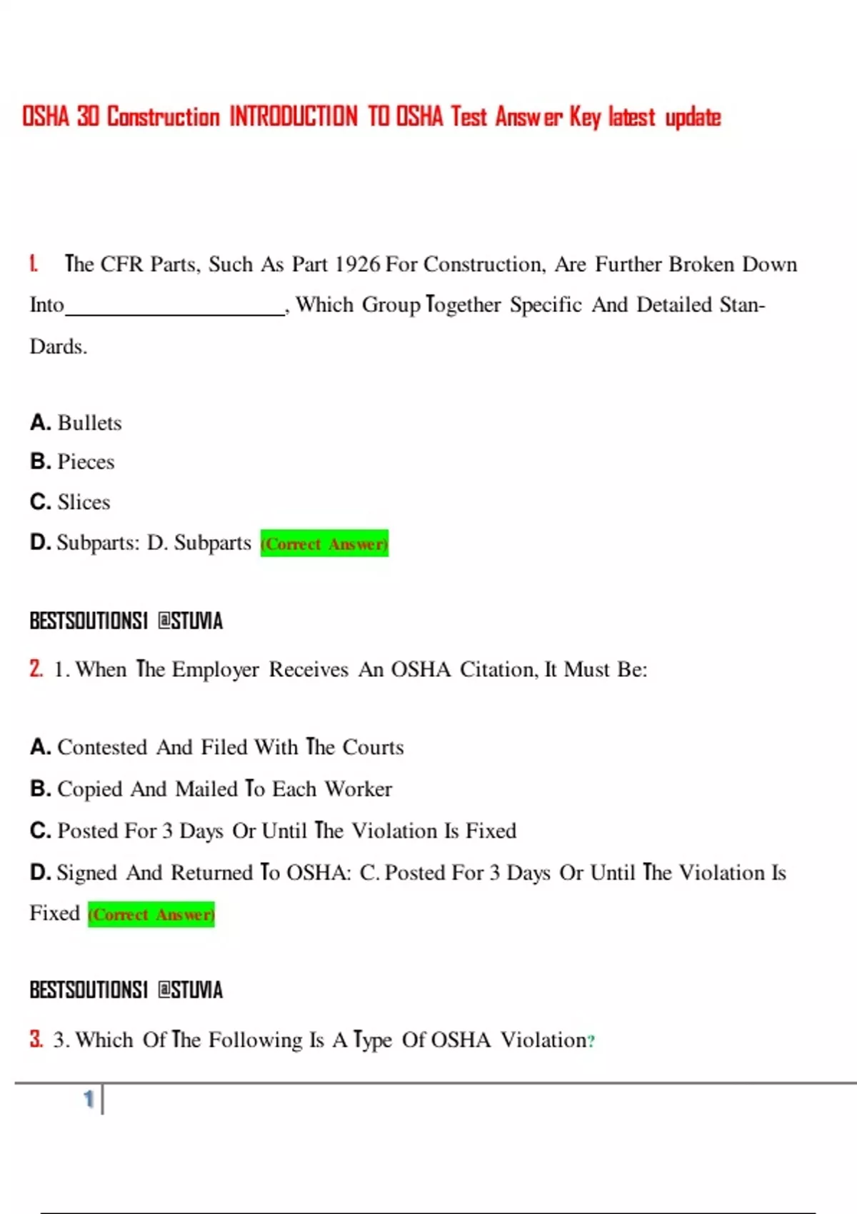 3. 3. Which Of The Following Is A Type Of OSHA Violation?