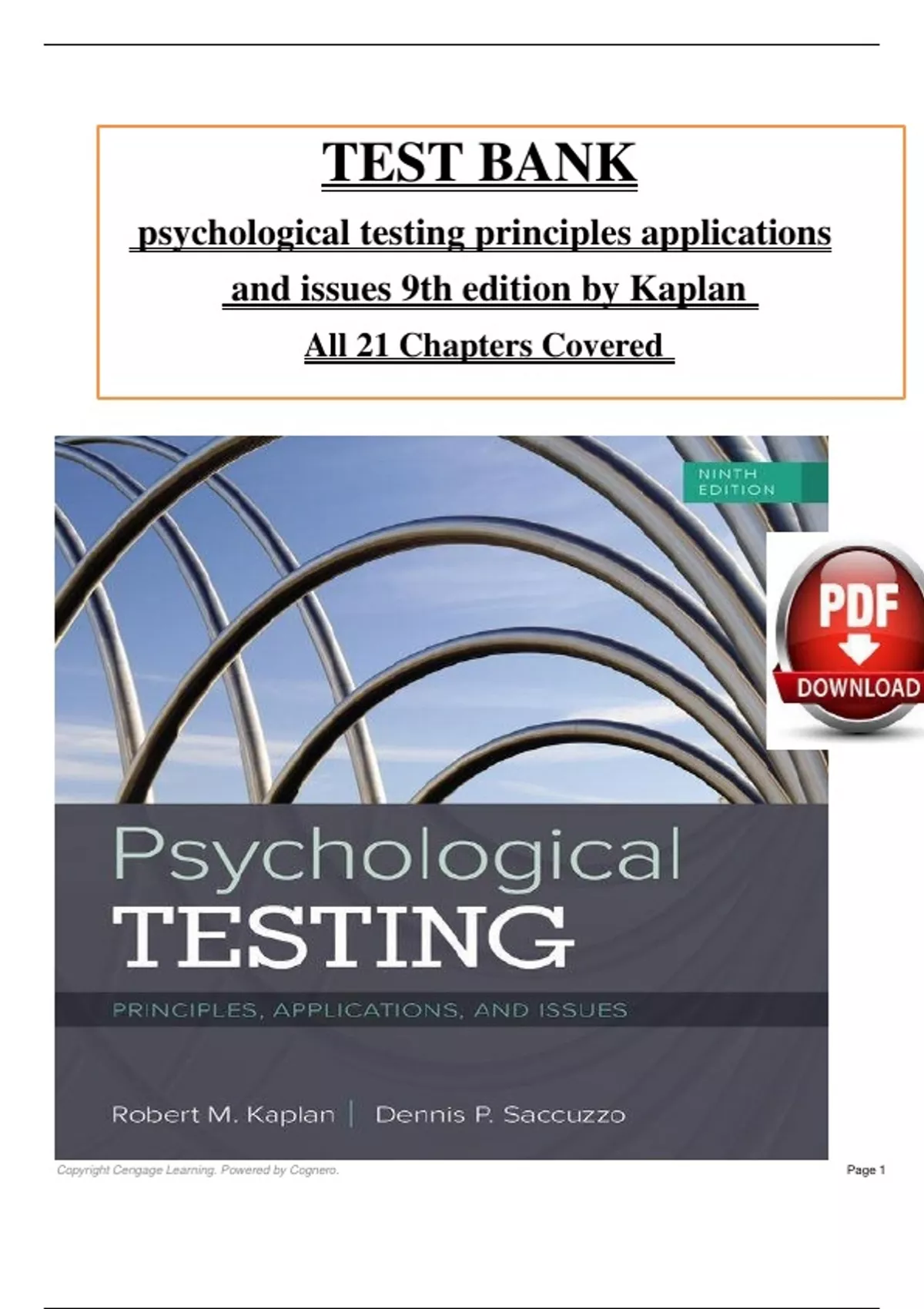 Test Bank - Psychological Testing: Principles, Applications, and Issues, 9th edition by Kaplan & Saccuzzo, All 21 Chapters Covered, Verified Latest Edition