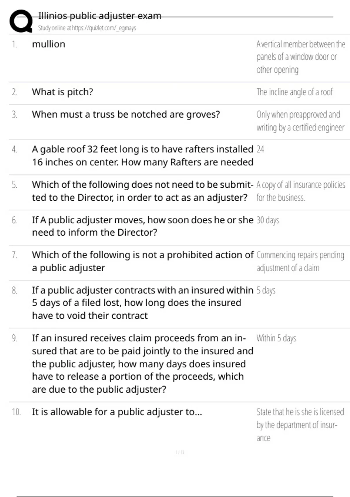 Illinios public adjuster exam [answered]