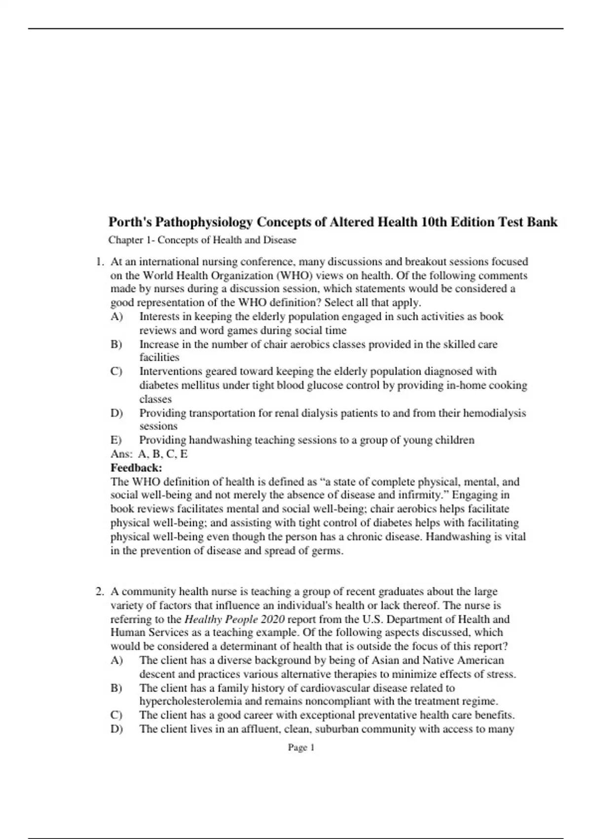 Porth's Pathophysiology Concepts of Altered Health 10th Edition Test Bank