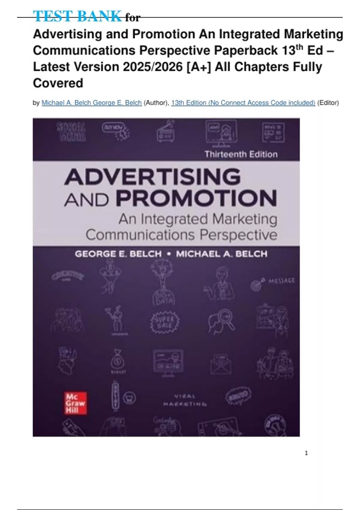 by Michael A. Belch George E. Belch (Author), 13th Edition (No Connect Access Code included) (Editor)