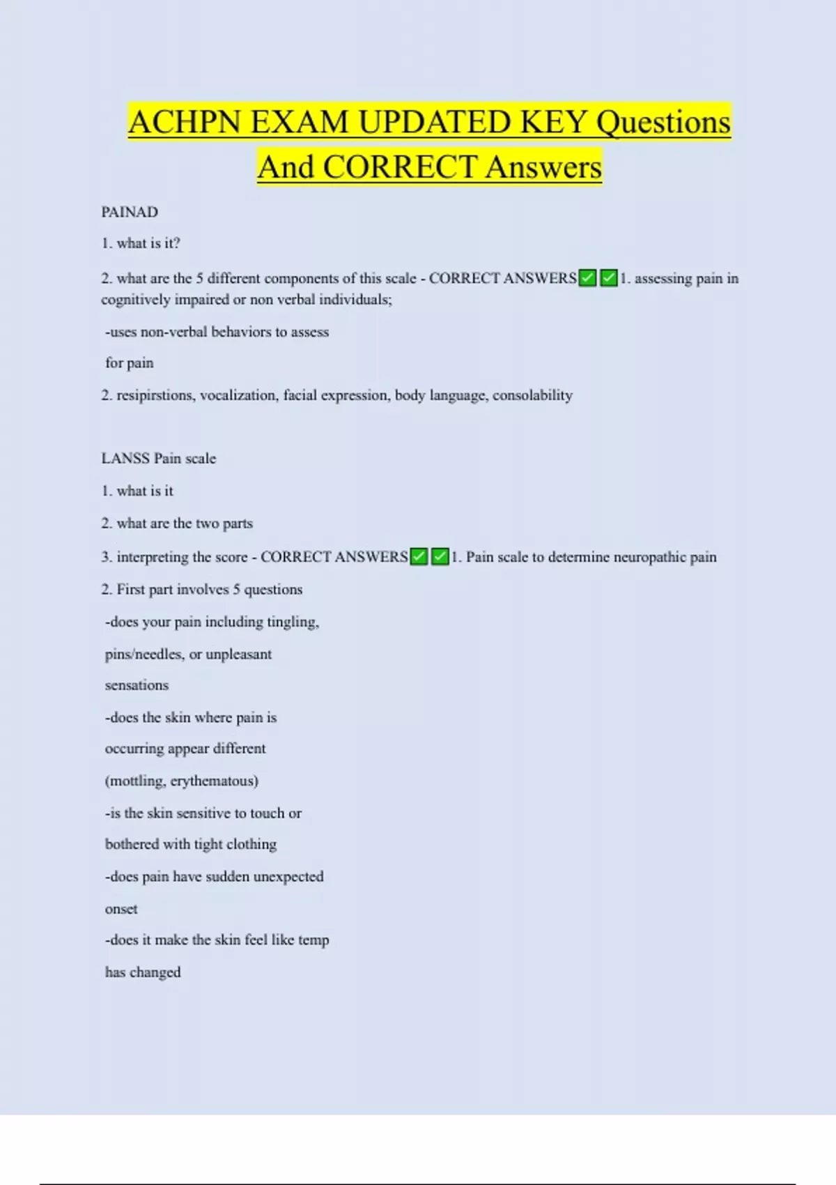 3. interpreting the score - CORRECT ANSWERS 1. Pain scale to determine neuropathic pain