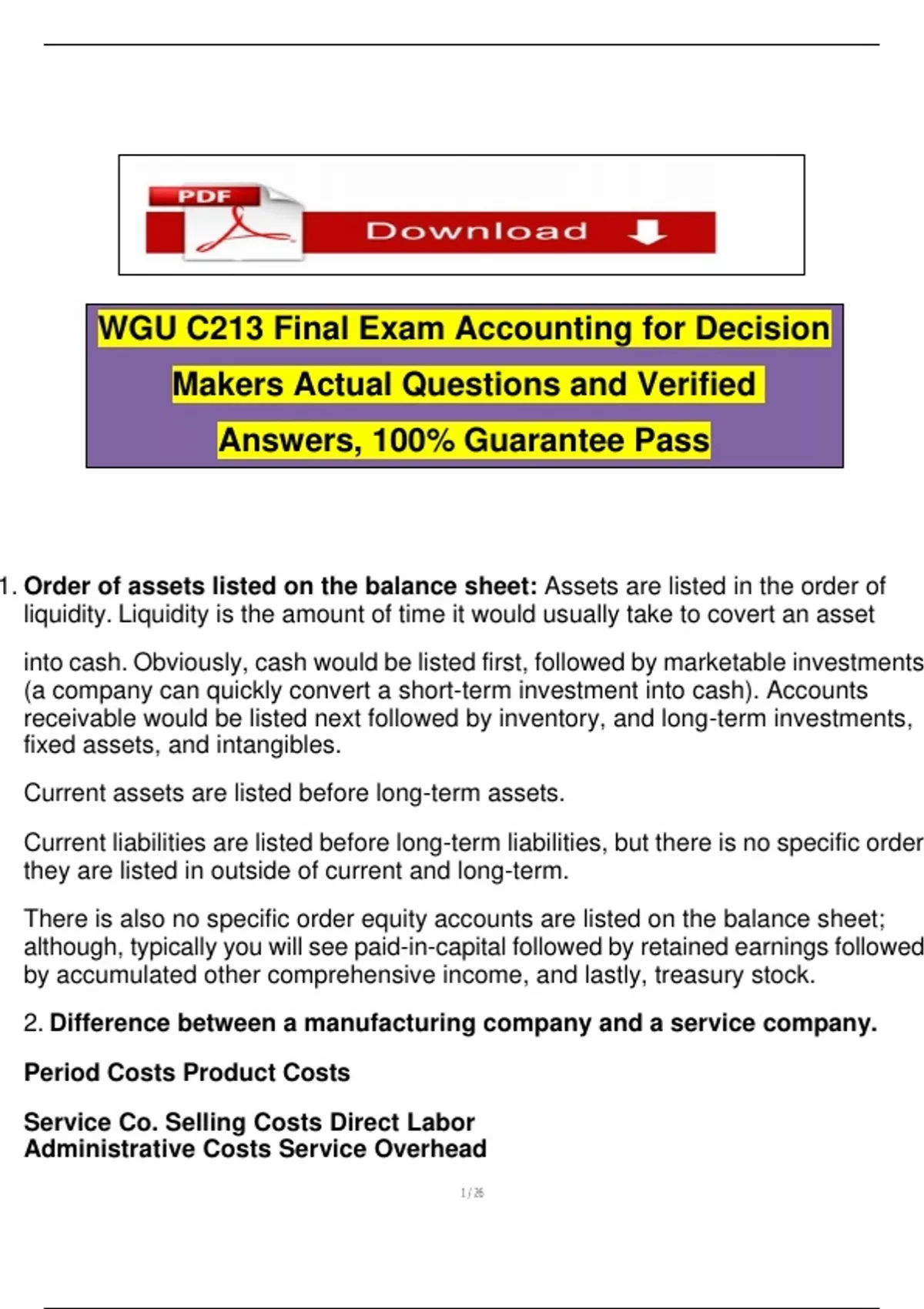 1. Order of assets listed on the balance sheet: Assets are listed in the order of