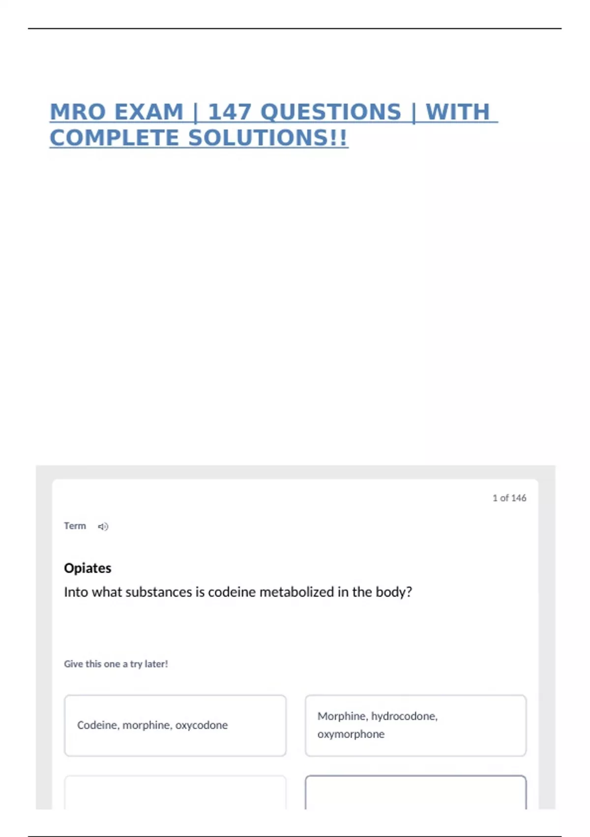MRO EXAM | 147 QUESTIONS | WITH COMPLETE SOLUTIONS!!