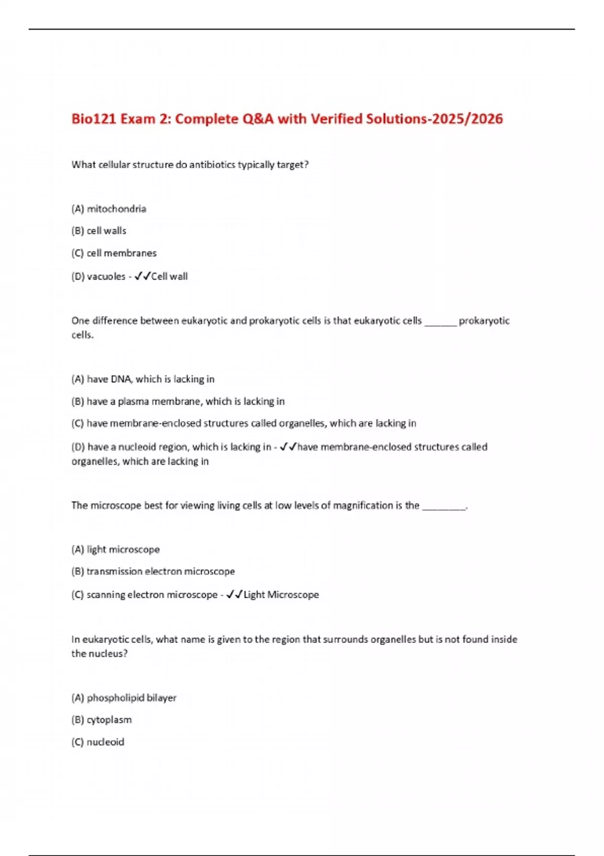 bio121 exam 2 complete qa with verified solution