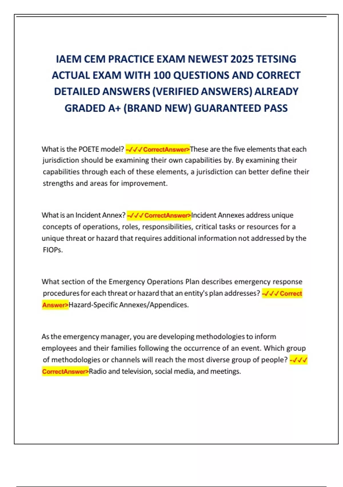 IAEM CEM PRACTICE EXAM NEWEST 2025 TETSING