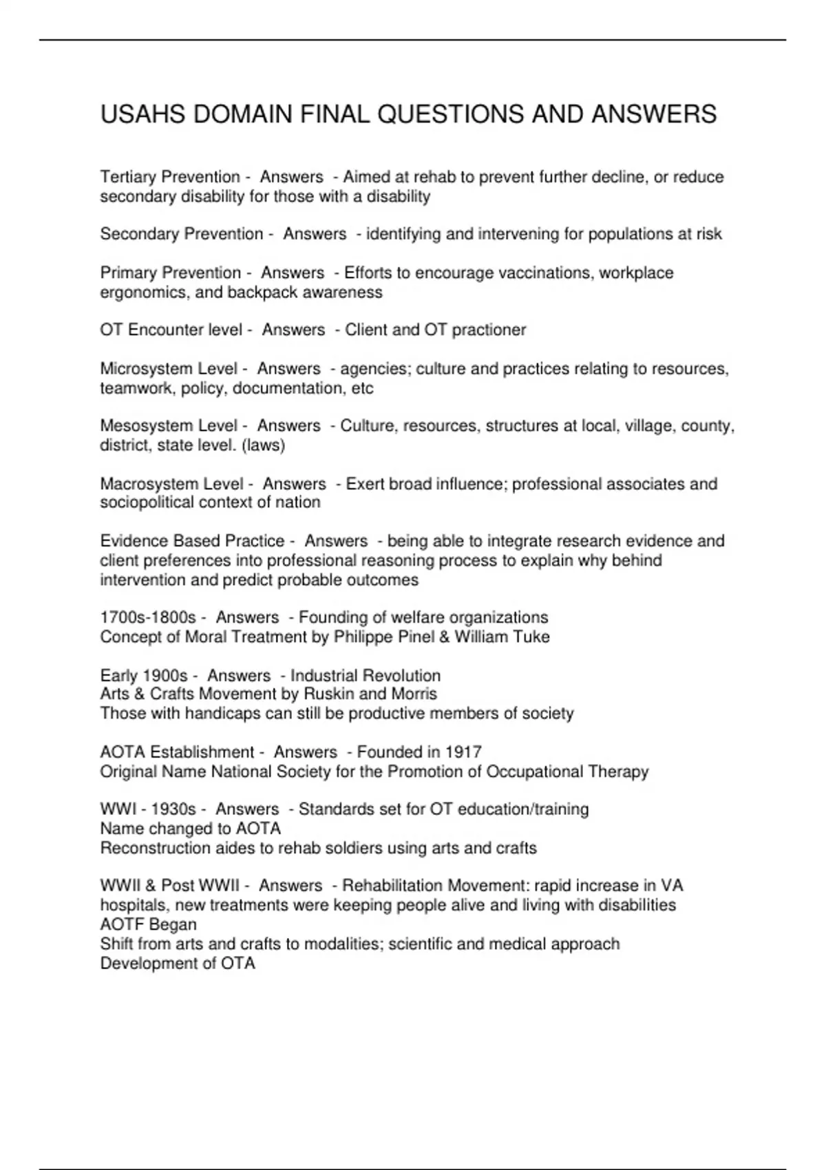 USAHS DOMAIN FINAL QUESTIONS AND ANSWERS