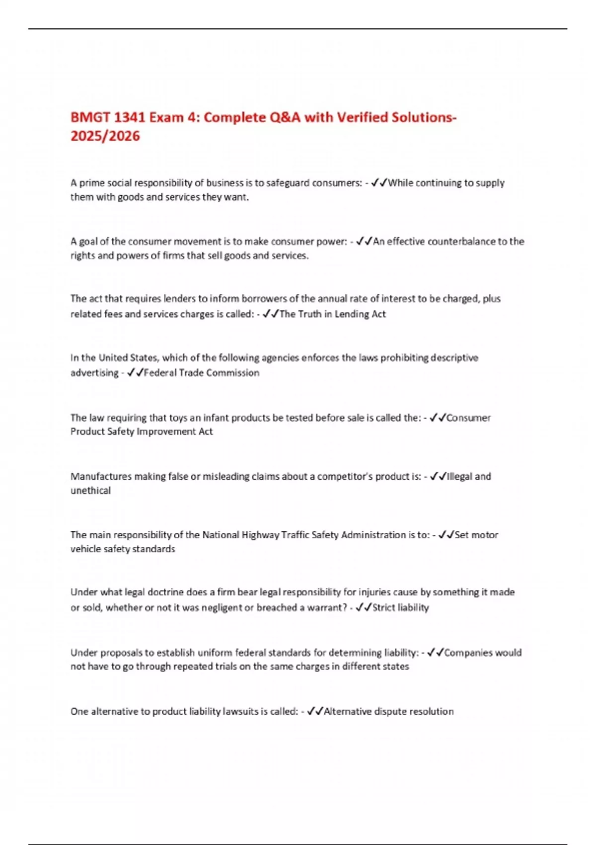 BMGT 1341 Exam 4: Complete Q&A with Verified Solutions 2025/2026