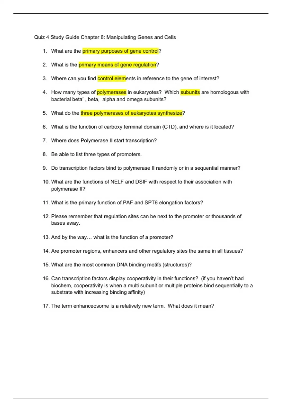 Covers Molecular Cell Biology, 9th Edition, primarily Chapter 8 topics on Gene Regulation and Transcription (RNA Polymerases, Promoters, Enhancers, Transcription Factors, Elongation Factors, DNA Motifs, and Enhanceosomes).