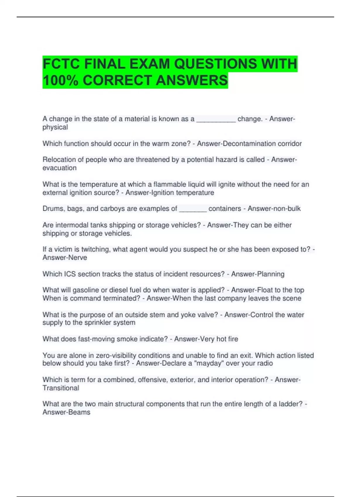 FCTC FINAL EXAM QUESTIONS WITH 100% CORRECT ANSWERS