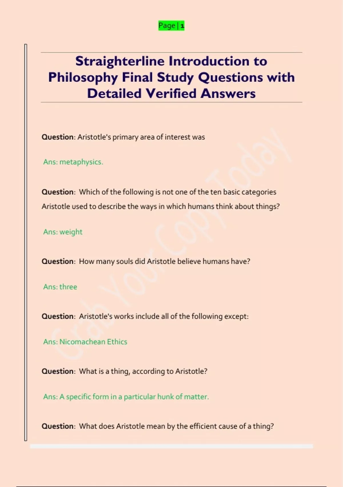 Question: Which of the following is an example of what Aristotle called a