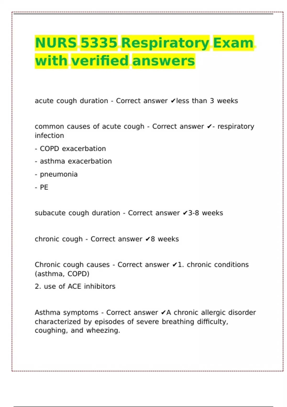 Chronic cough causes - Correct answer ✔1. chronic conditions