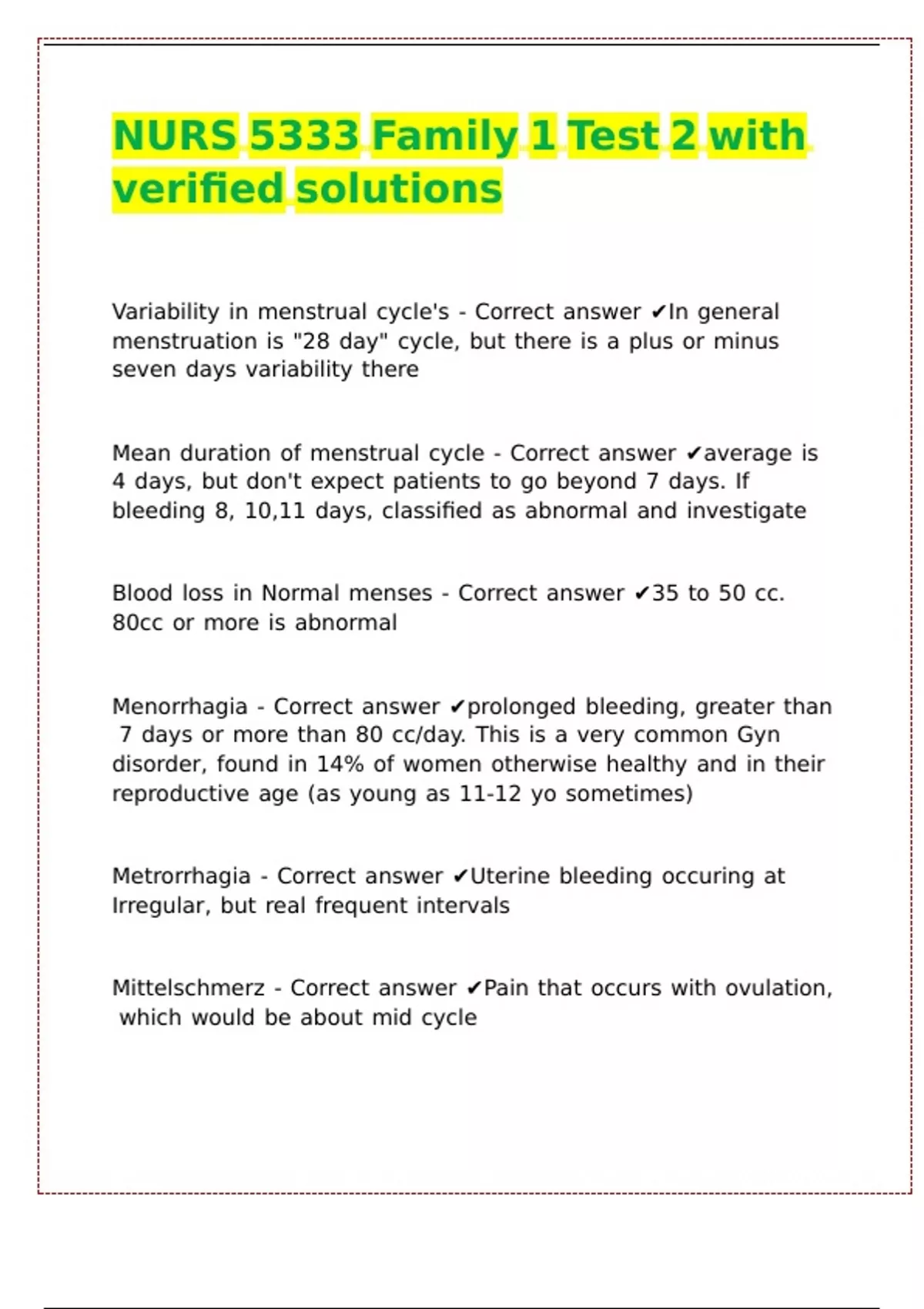 NURS 5333 Family 1 Test 2 with verified solutions