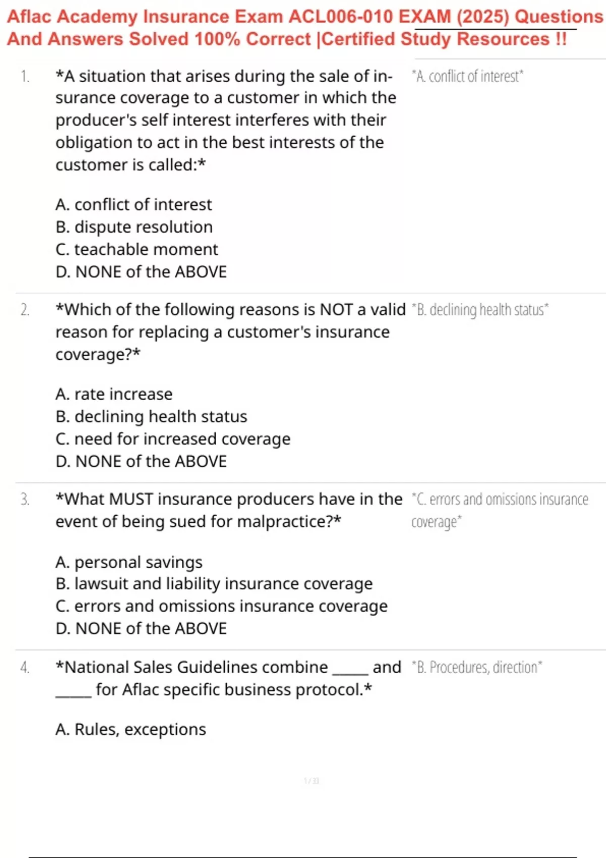 Aflac Academy Insurance Exam ACL006-010 EXAM (2025) Questions And Answers Solved 100% Correct |Certified Study Resources !!