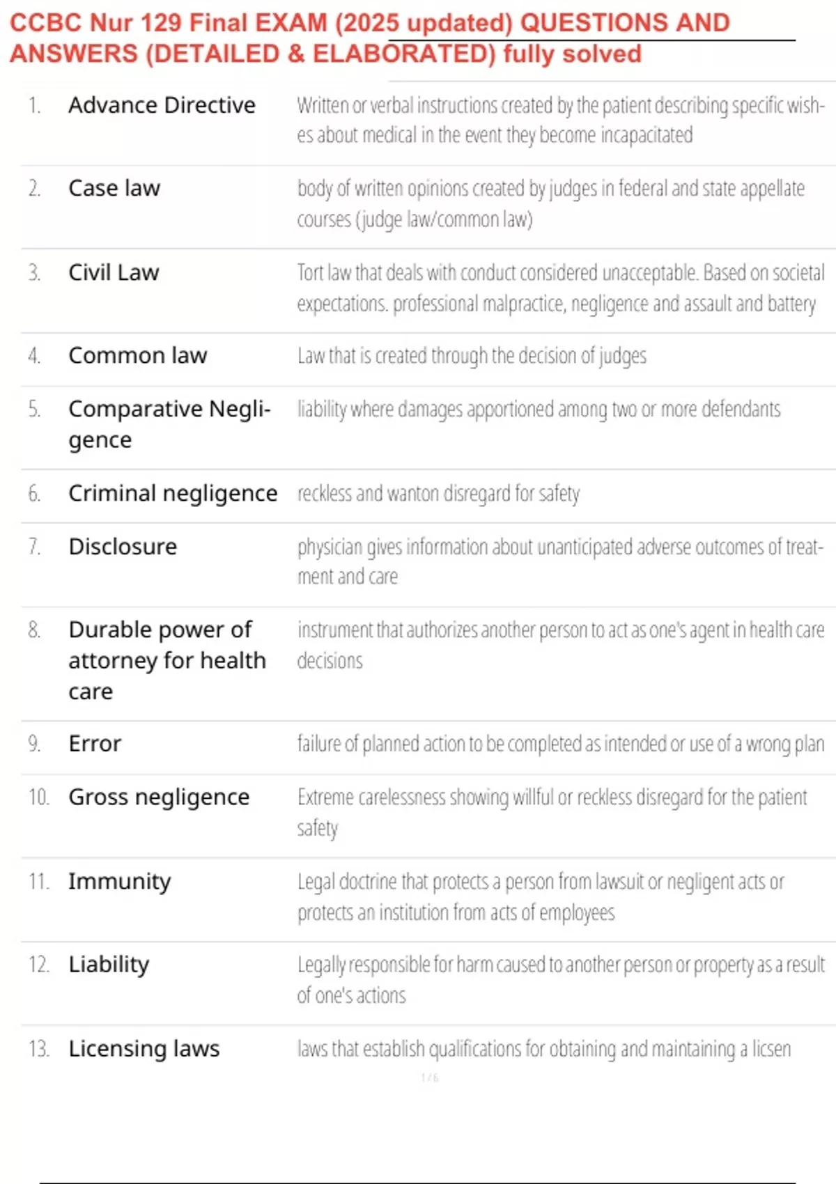 CCBC Nur 129 Final EXAM (2025 updated) QUESTIONS AND