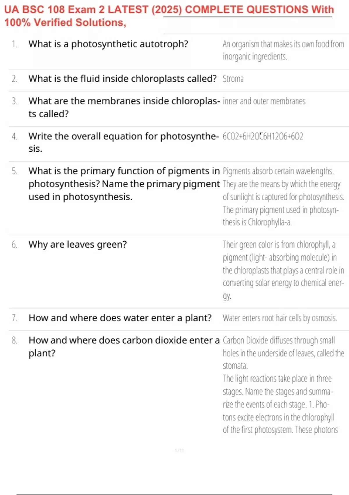 UA BSC 108 Exam 2 LATEST (2025) COMPLETE QUESTIONS With