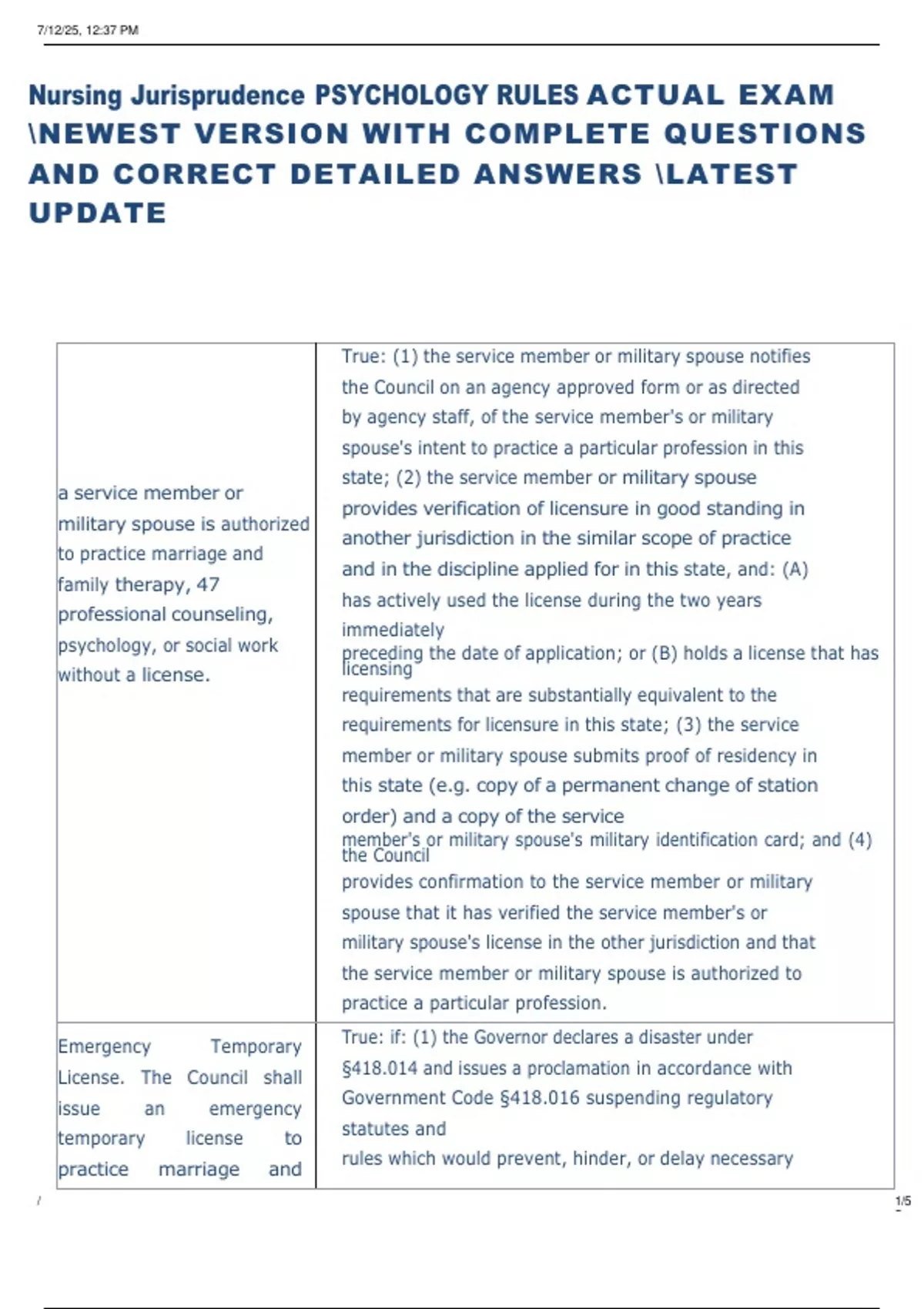 Nursing Jurisprudence PSYCHOLOGY RULES ACTUAL EXAM