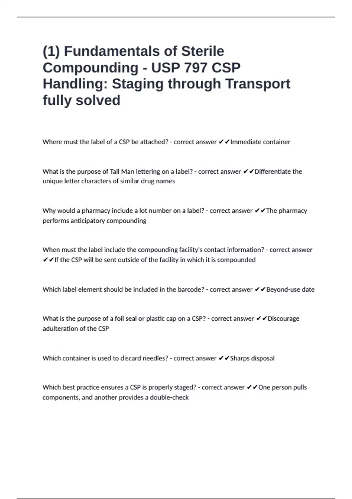 (1) Fundamentals of Sterile Compounding - USP 797 CSP Handling: Staging through Transport fully solved