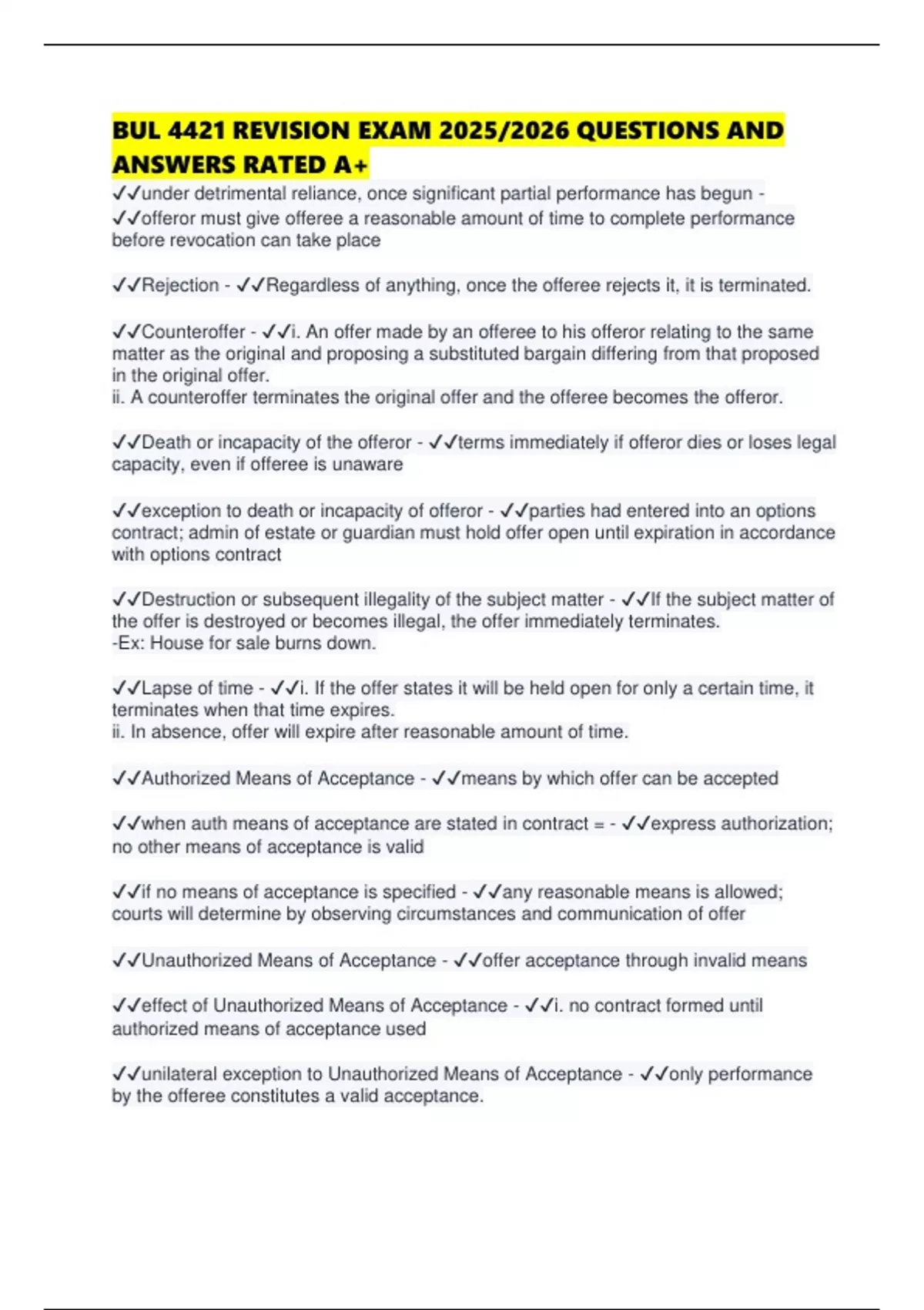 ✔✔Authorized Means of Acceptance - ✔✔means by which offer can be accepted
