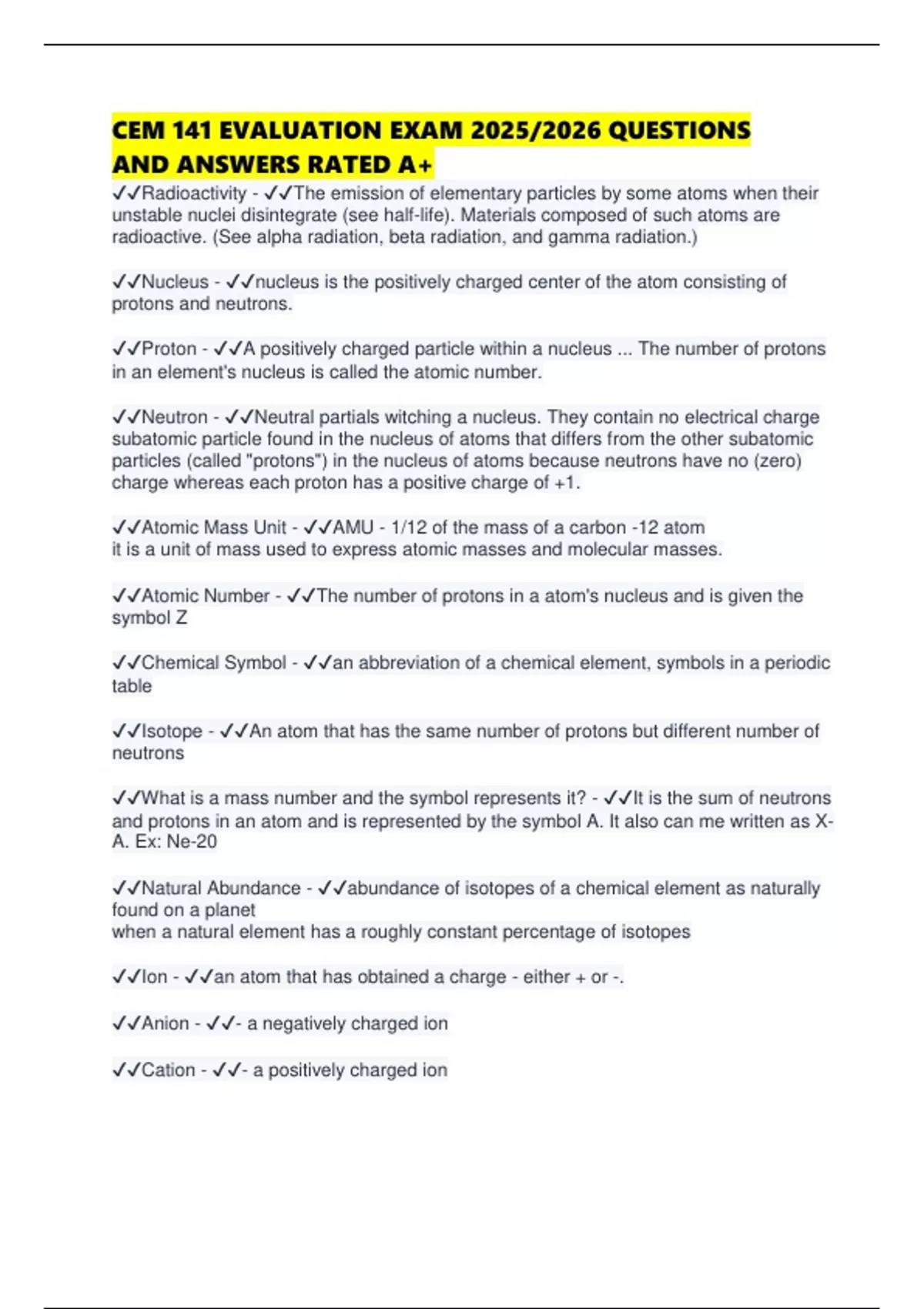 ✔✔Radioactivity - ✔✔The emission of elementary particles by some atoms when their