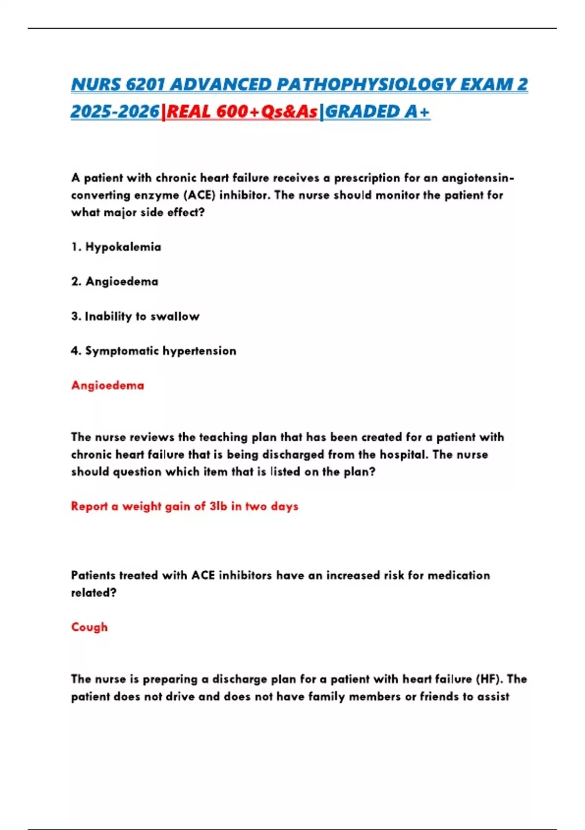 NURS 6201 ADVANCED PATHOPHYSIOLOGY EXAM |REAL 600+Qs&As|GRADED A+