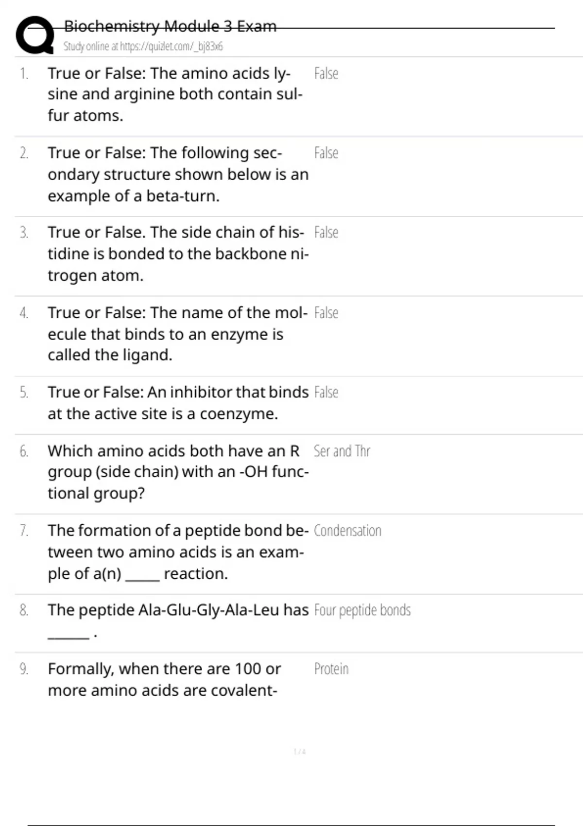 8. The peptide Ala-Glu-Gly-Ala-Leu has Four peptide bonds