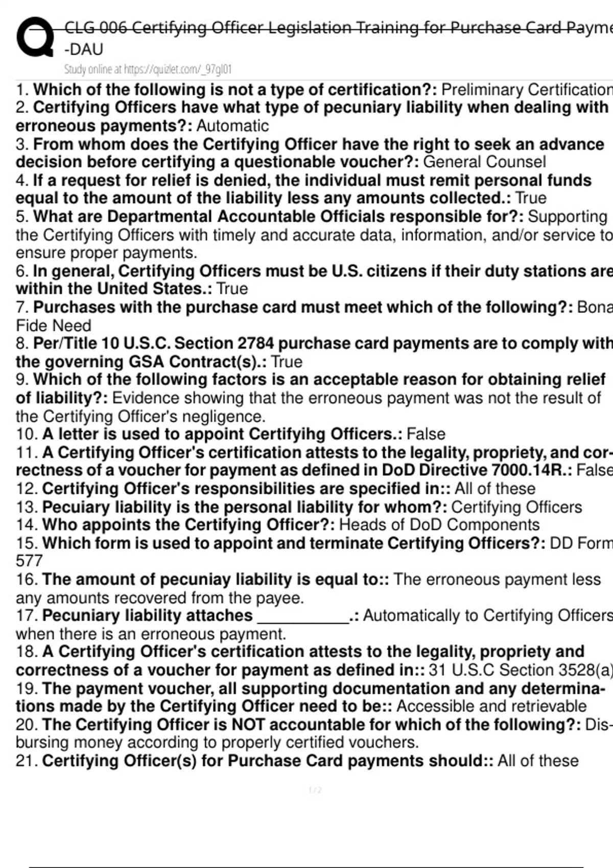 21. Certifying Officer(s) for Purchase Card payments should:: All of these