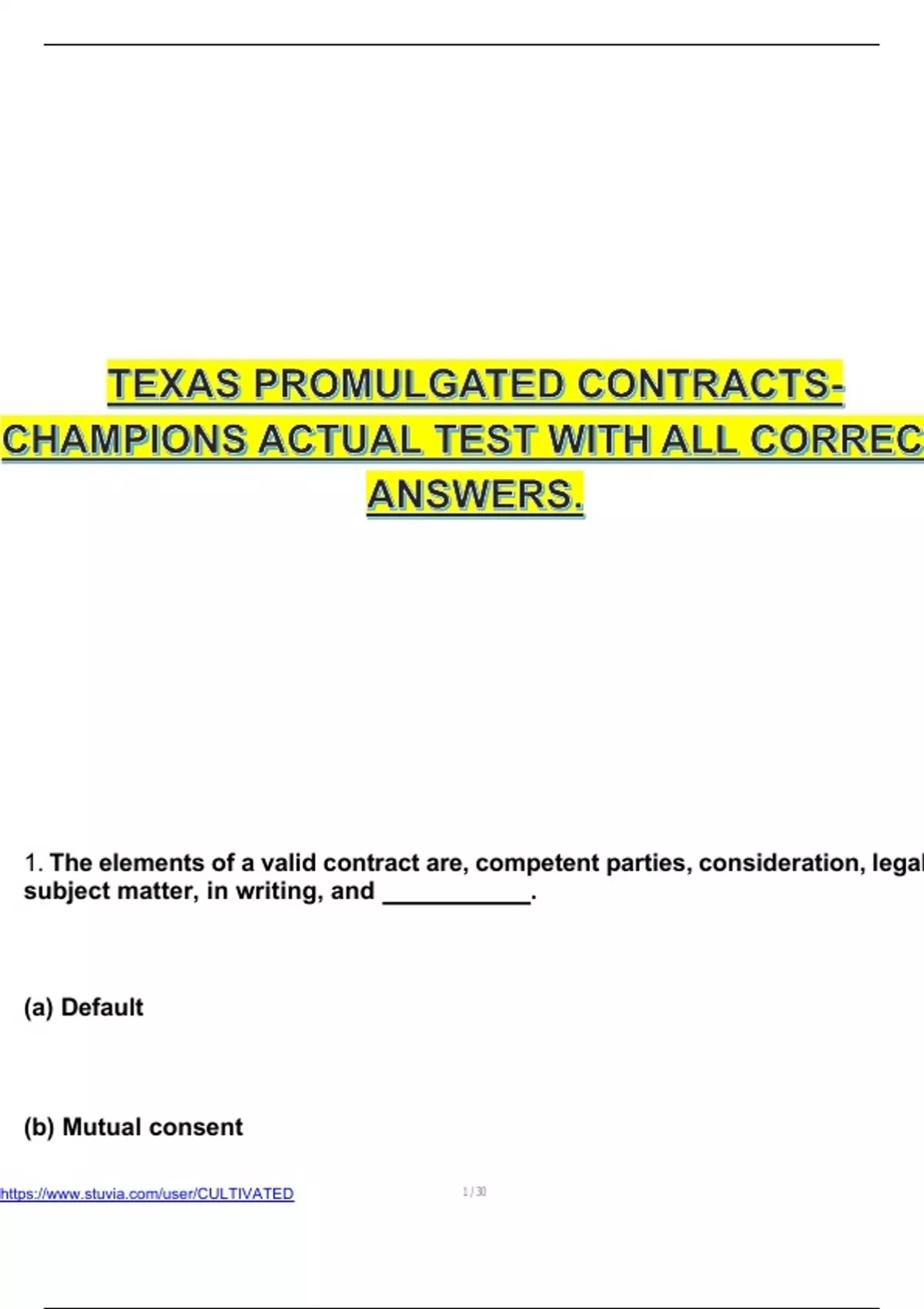 1. The elements of a valid contract are, competent parties, consideration, legal