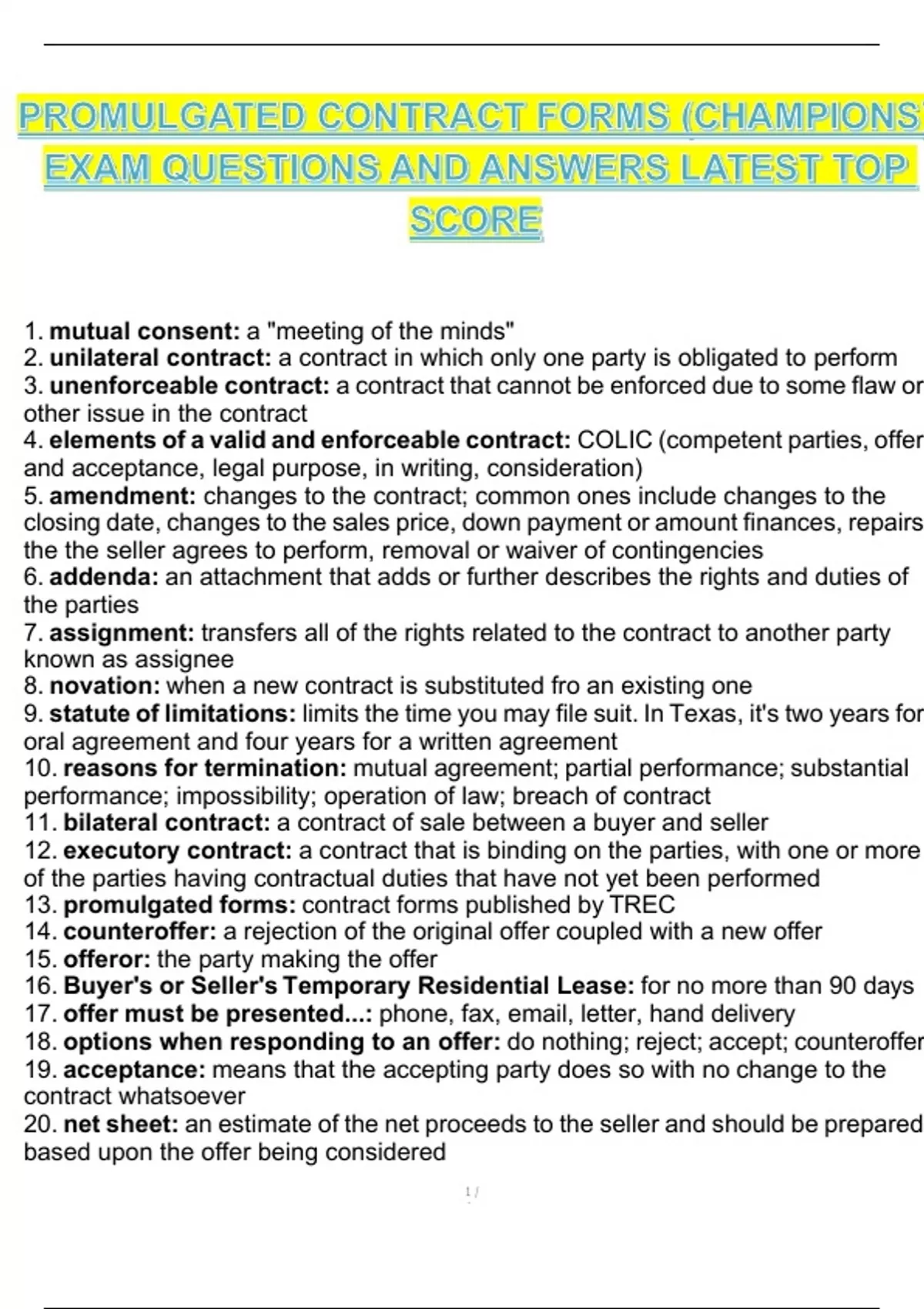 13. promulgated forms: contract forms published by TREC