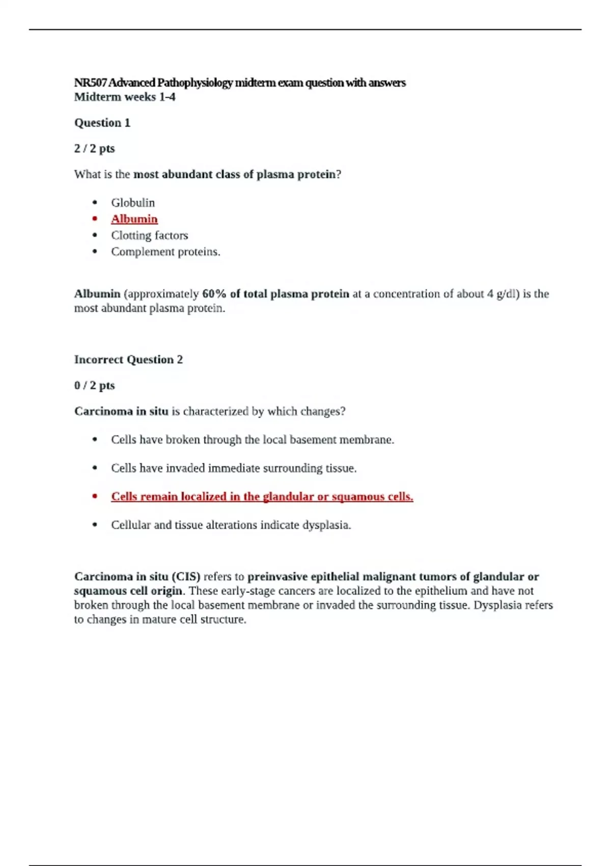 NR507 Advanced Pathophysiology midterm exam question with answer