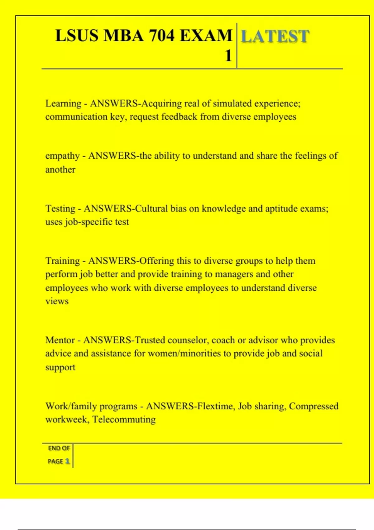 LSUS MBA 704 EXAM 1 QUESTIONS AND ANSWERS 2025