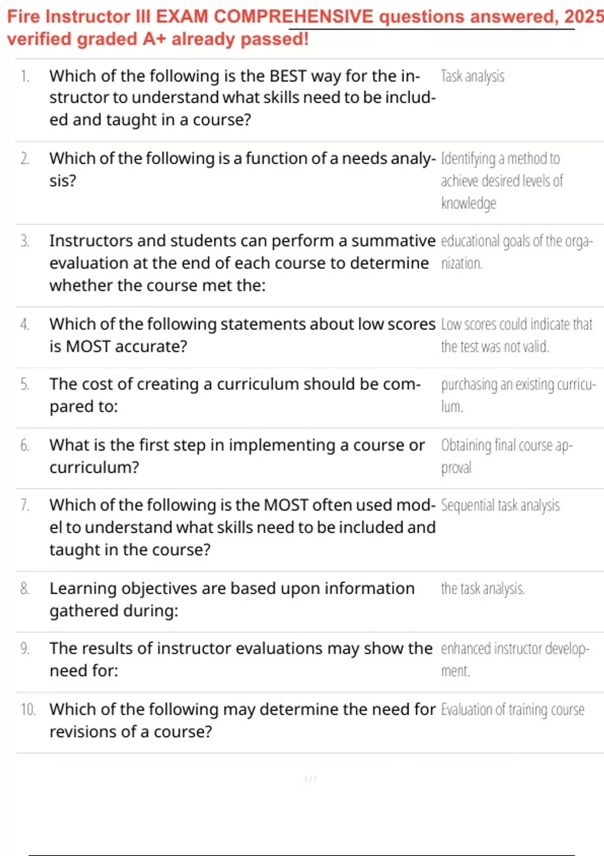 Fire Instructor III EXAM COMPREHENSIVE questions answered, 2025