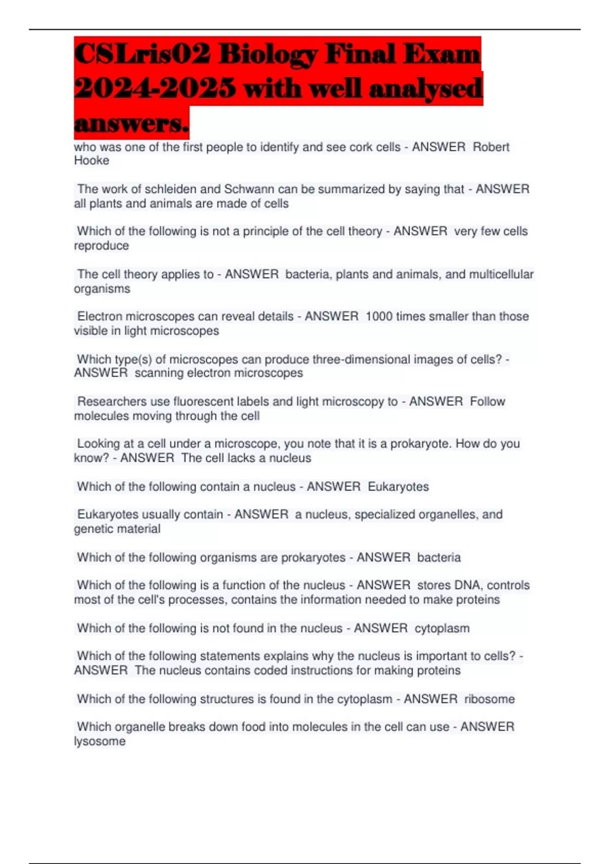 , CSLris02 Biology Final Exam