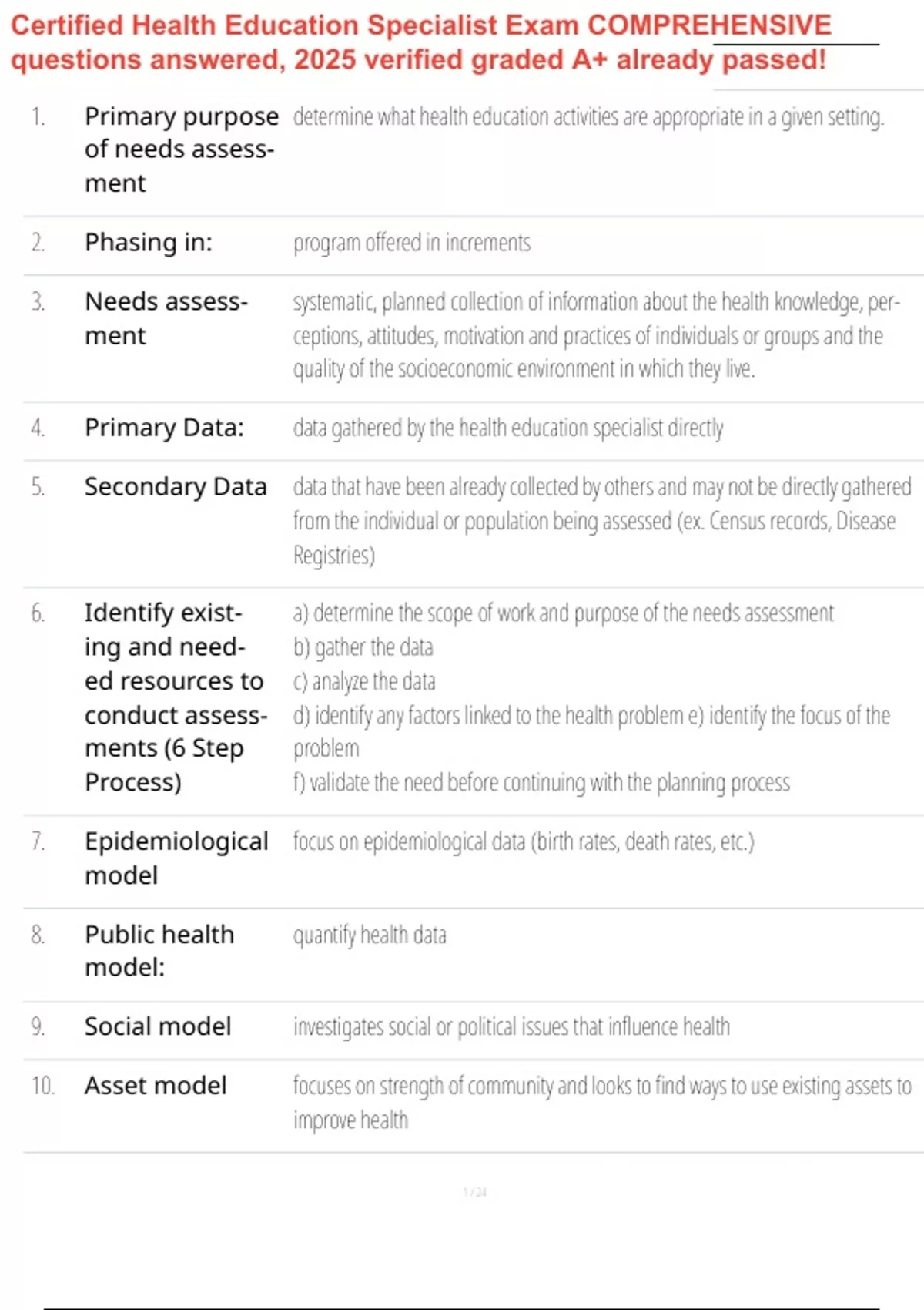 Certified Health Education Specialist Exam COMPREHENSIVE