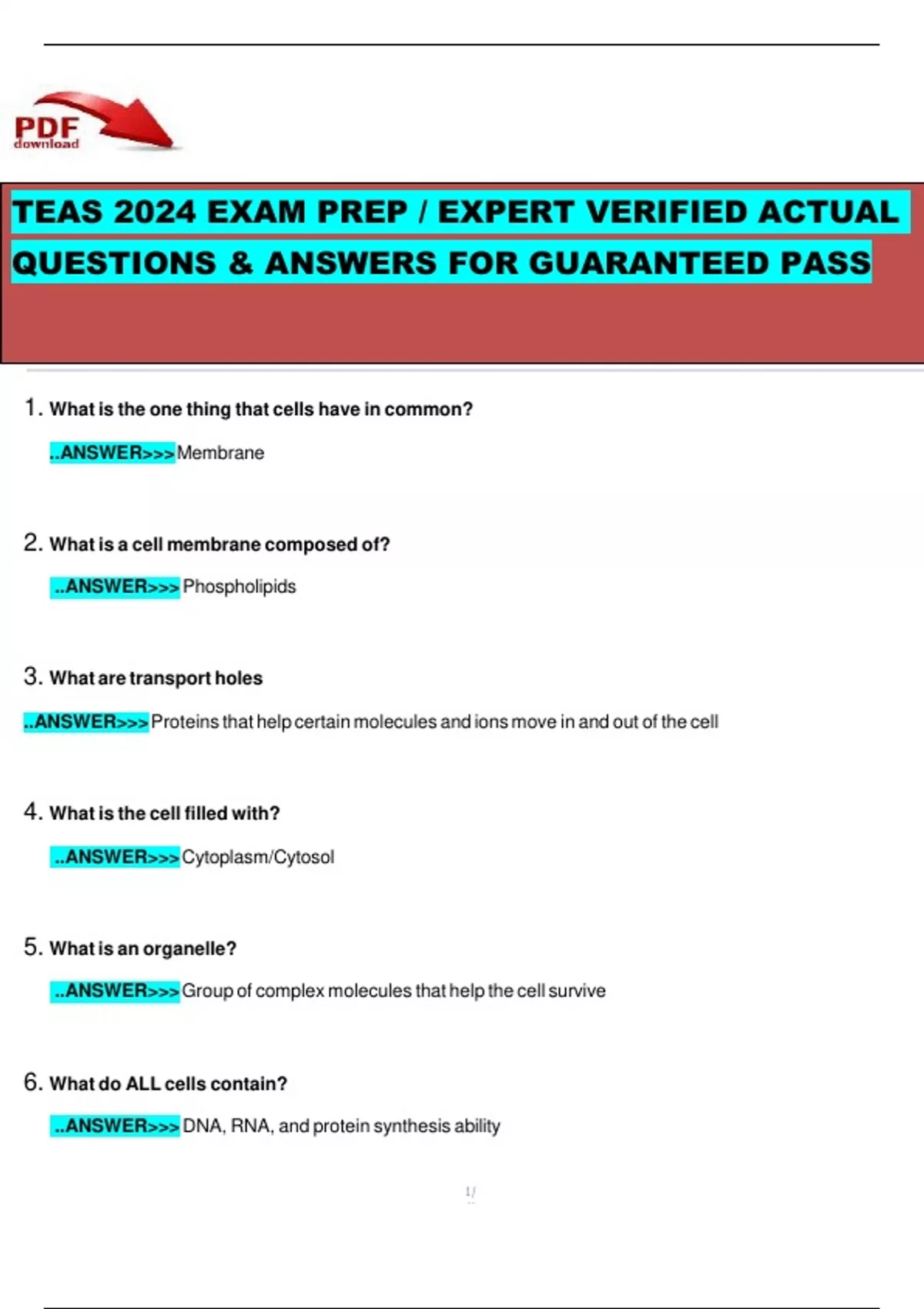 TEAS 2024 Exam Prep / Expert Verified Actual Questions & Answers for Guaranteed Pass