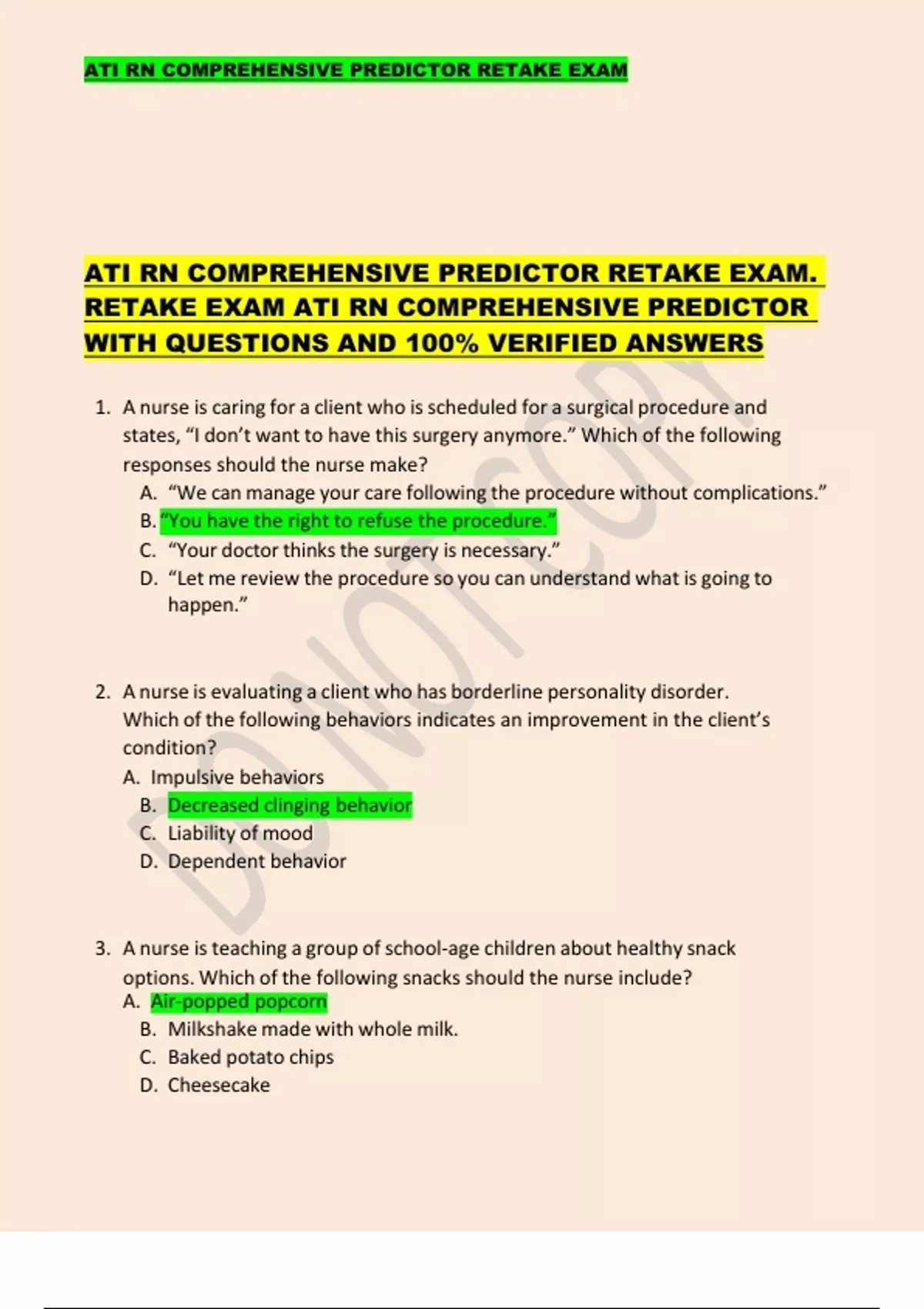 RETAKE EXAM ATI RN COMPREHENSIVE PREDICTOR