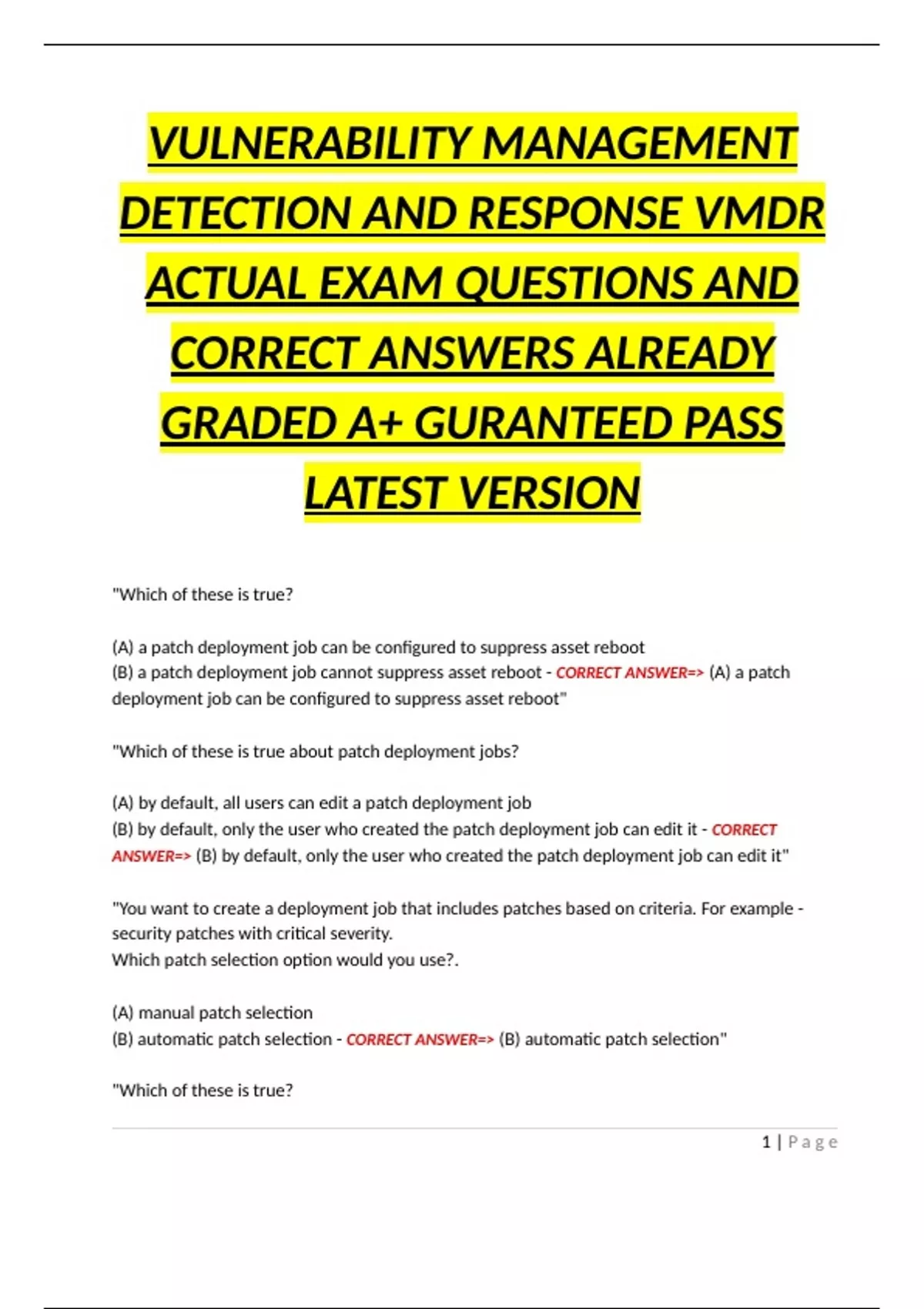(B) a patch deployment job cannot suppress asset reboot - CORRECT ANSWER=> (A) a patch