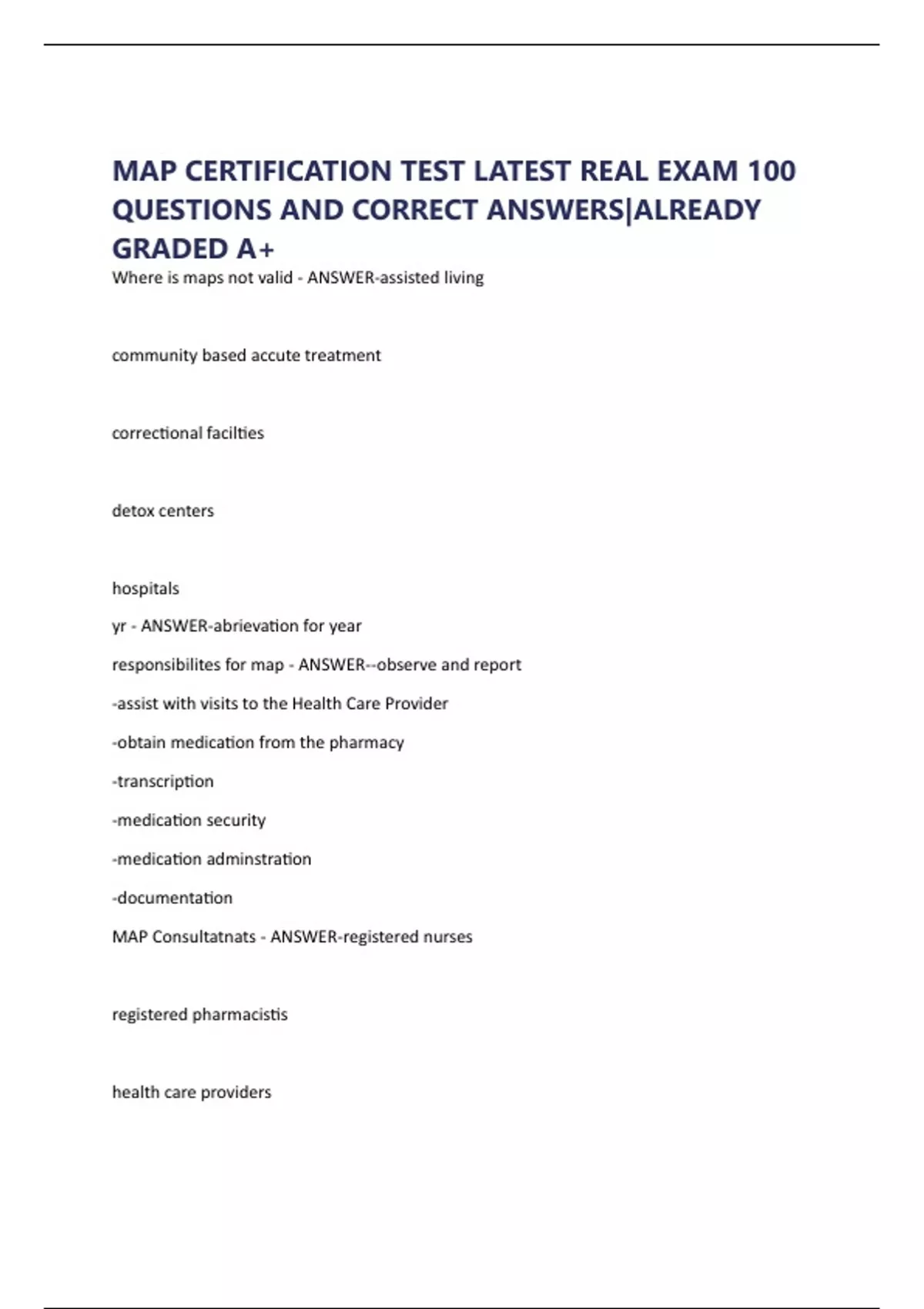MAP Consultatnats - ANSWER-registered nurses