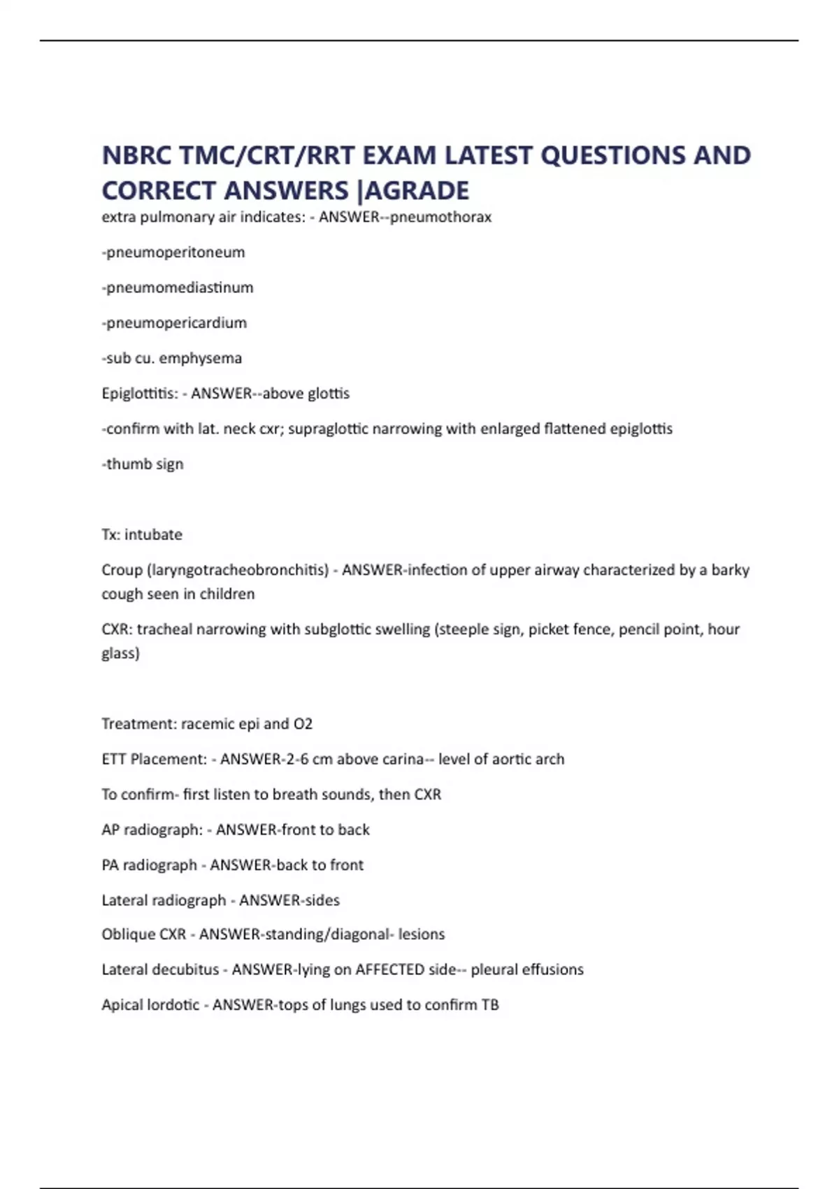 NBRC TMC/CRT/RRT EXAM LATEST QUESTIONS AND CORRECT ANSWERS |AGRADE