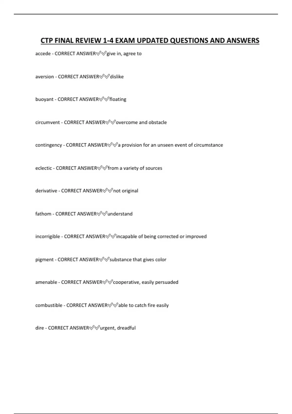CTP FINAL REVIEW 1-4 EXAM UPDATED QUESTIONS AND ANSWERS