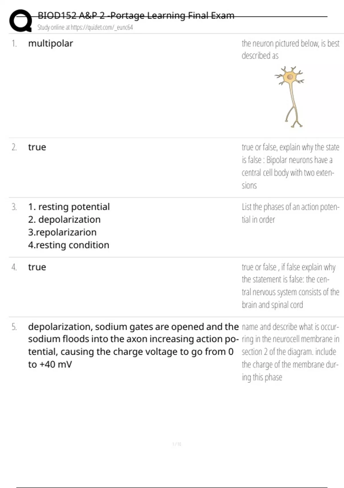 BIOD152 A&P 2 -Portage Learning Final Exam