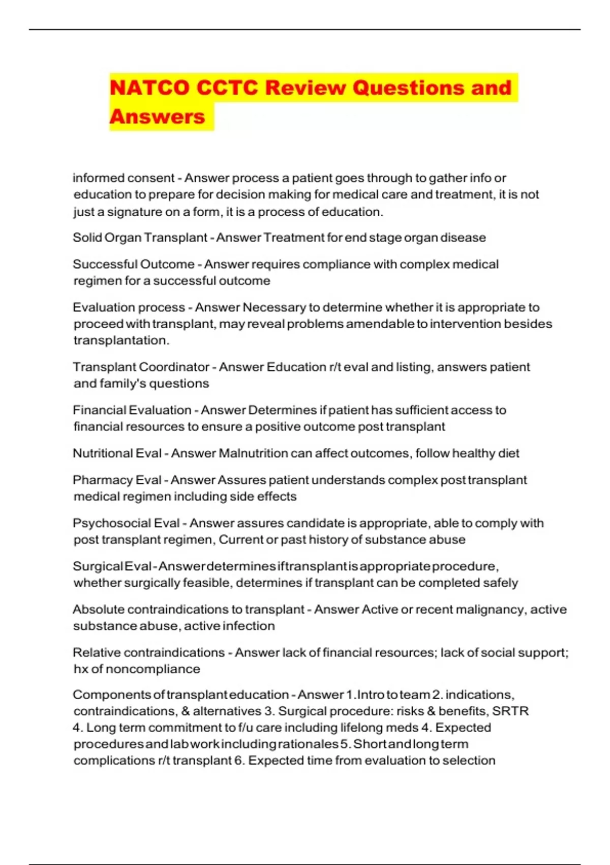 NATCO CCTC Review Questions and Answers
