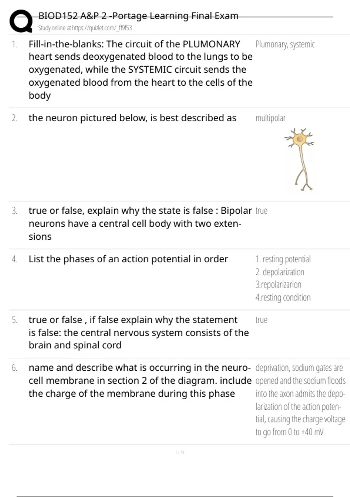 BIOD152 A&P 2 -Portage Learning Final Exam