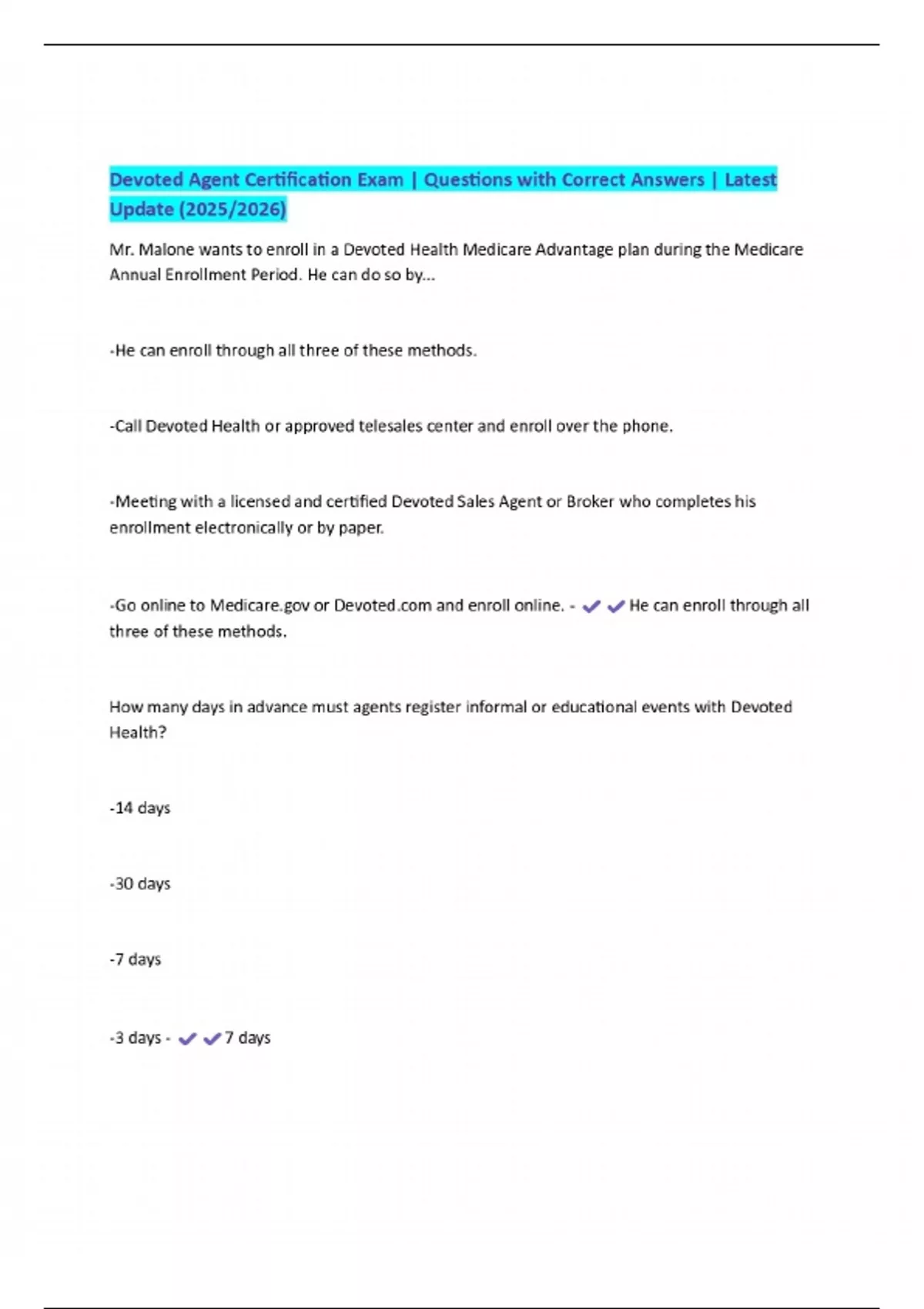 Devoted Agent Certification Exam | Questions with Correct Answers | Latest Update (2025/2026)