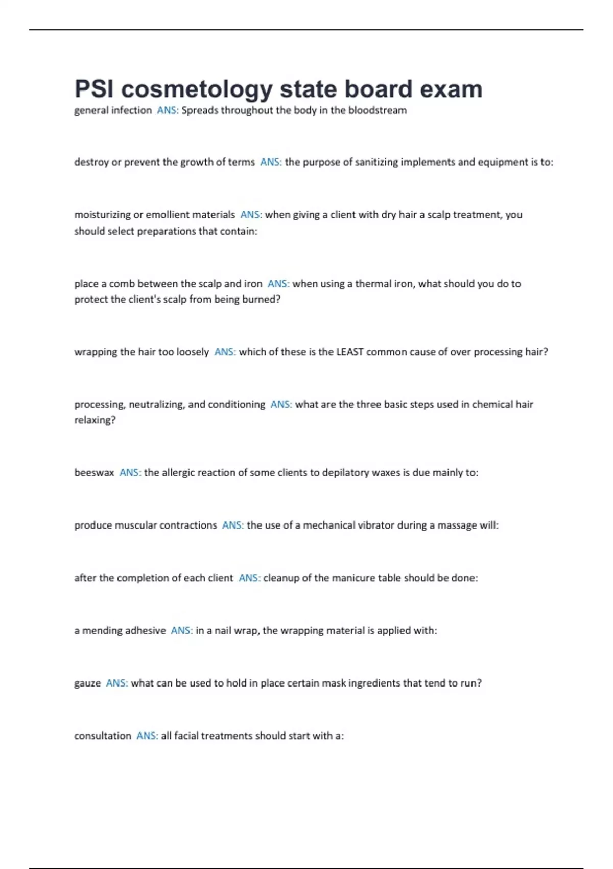 processing, neutralizing, and conditioning ANS: what are the three basic steps used in chemical hair