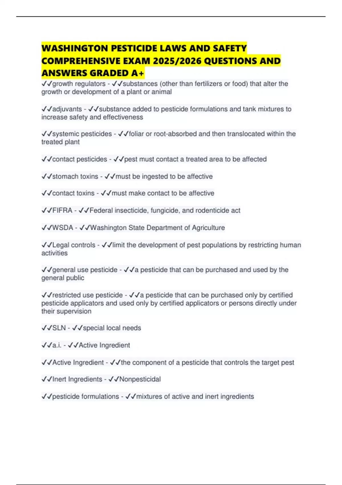 ✔✔Active Ingredient - ✔✔the component of a pesticide that controls the target pest