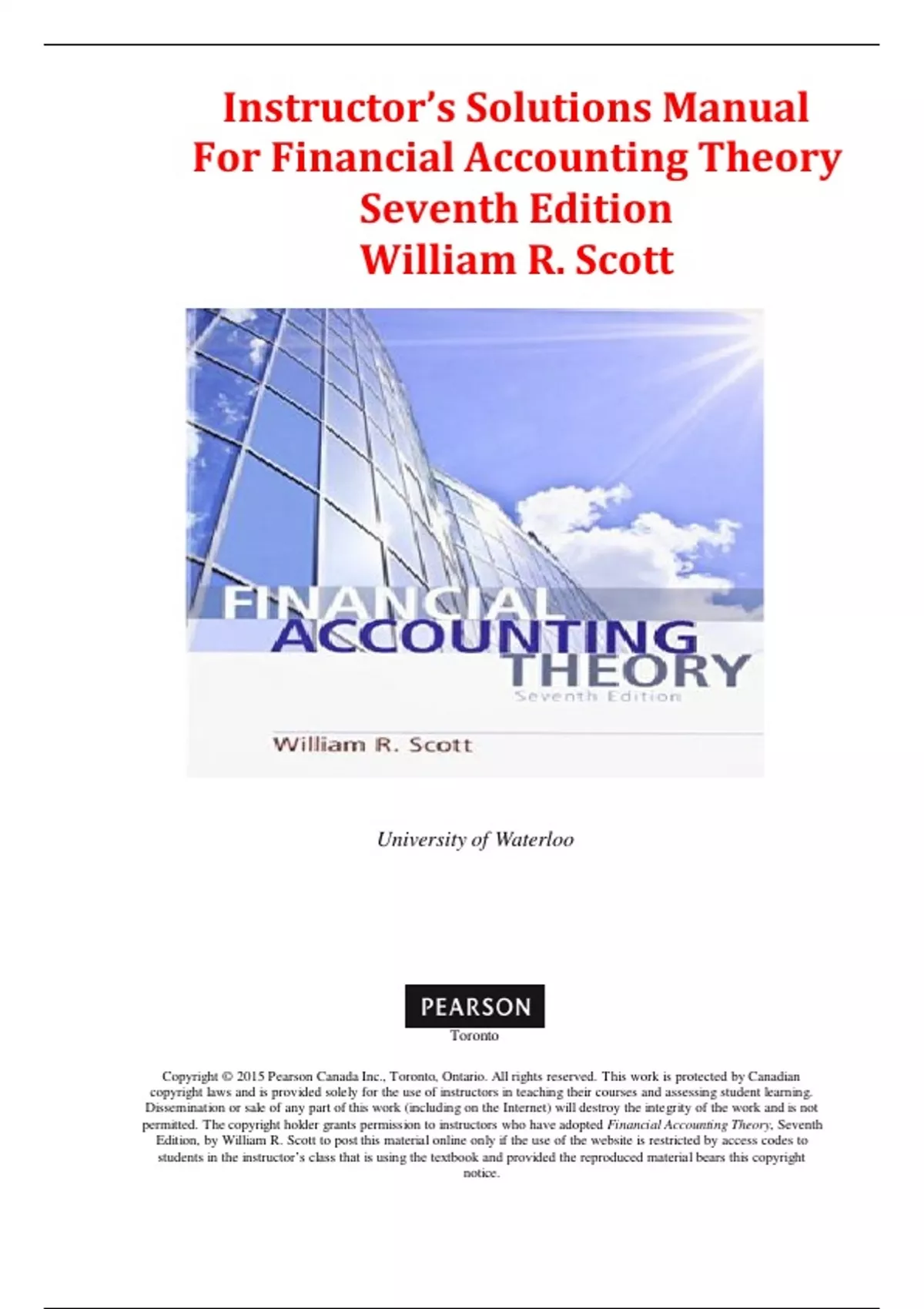 permitted. The copyright holder grants permission to instructors who have adopted Financial Accounting Theory, Seventh