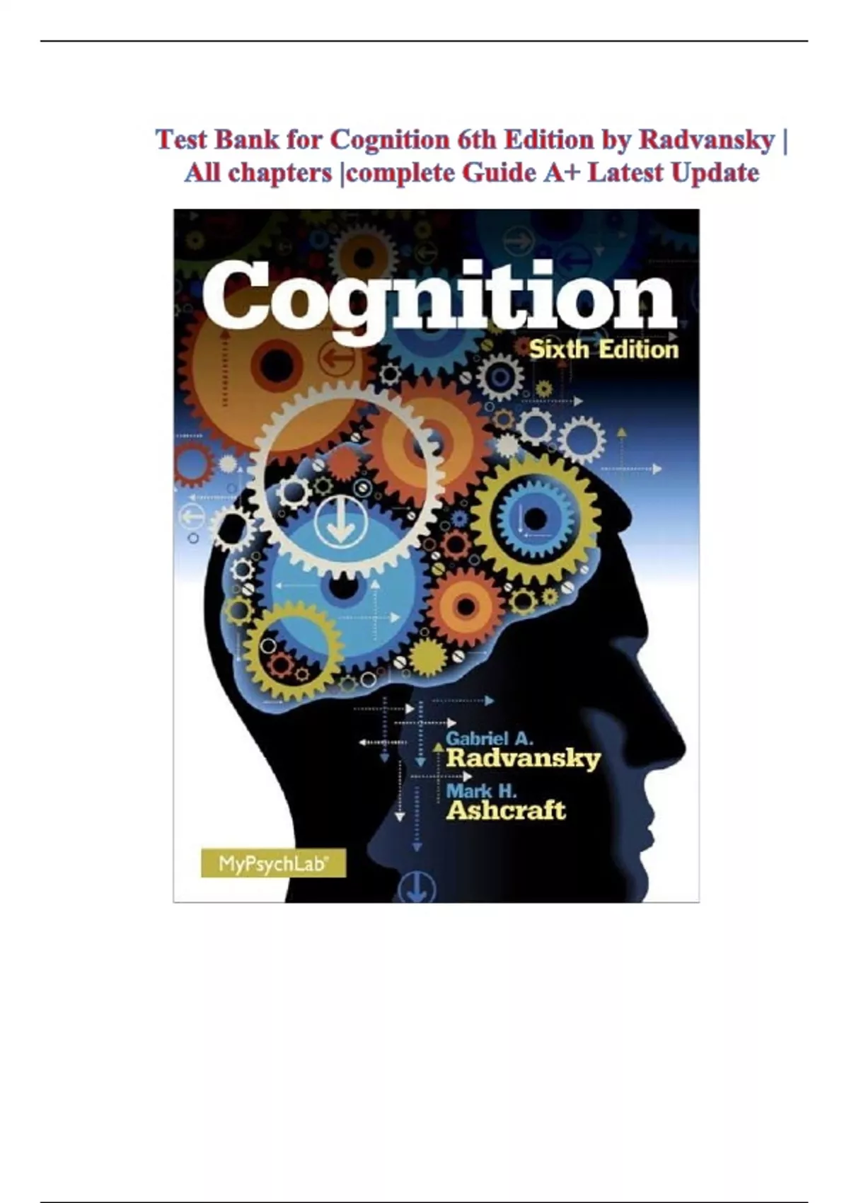 TEST BANK FOR COGNITION, 6TH EDITION ISBN-, MARK H. ASHCRAFT, GABRIEL A. RADVANSKY