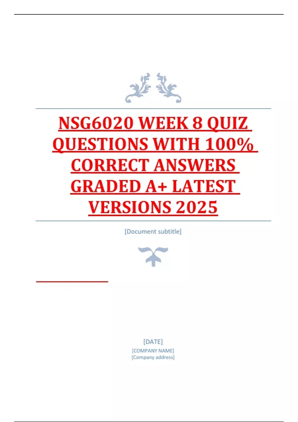 NSG6020 WEEK 8 QUIZ QUESTIONS WITH 100- CORRECT ANSWERS GRADED A+ LATEST VERSIONS