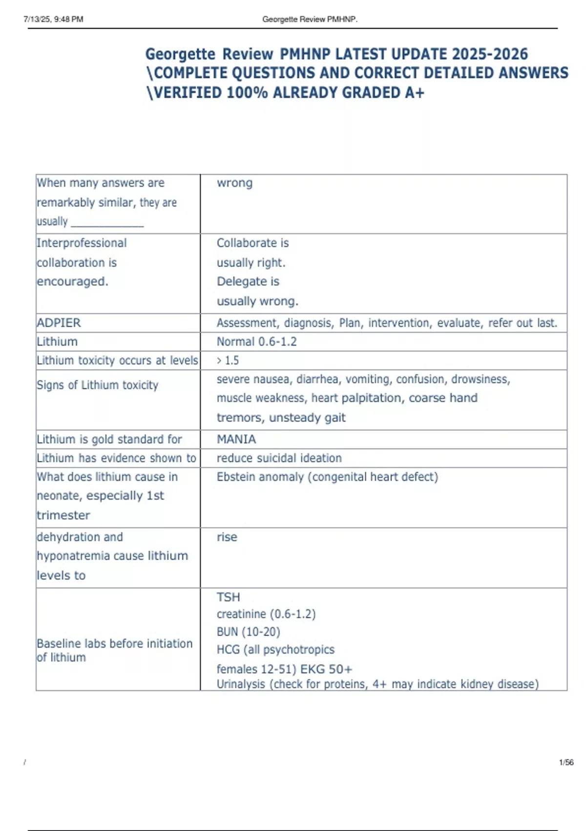 Georgette Review PMHNP LATEST UPDATE 2025-2026